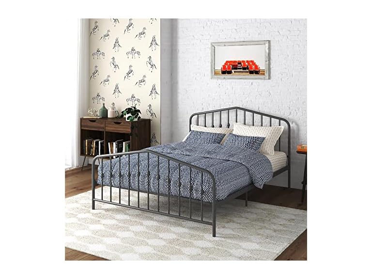 - (1) Novogratz Bushwick Metal Bed with Headboard and Footboard | Modern Design | Queen Size - Grey