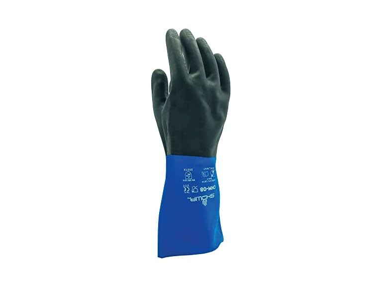- (1) SHOWA CHM Neoprene Over Natural Rubber Latex Chemical Resistant Safety Glove with Cotton Flock Liner, Food Safe, 26 Mil Thick, 12" Length, Large (12 Pair)