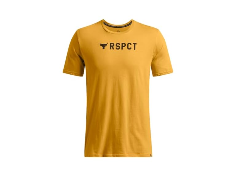 - (1) Under Armour Men's Project Rock Respect Short Sleeve T Shirt, (711) Golden Yellow / / Black, 4X-Large Tall