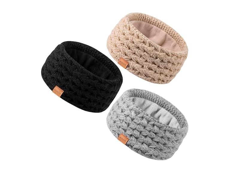 - (1) Winter Headbands for Women 3 Pack, Ear Warmers for Women Knit Thick Fleece Lined, Ear Muffs for Cold Weather Stocking Stuffs(Black&Beige&Light Gray)