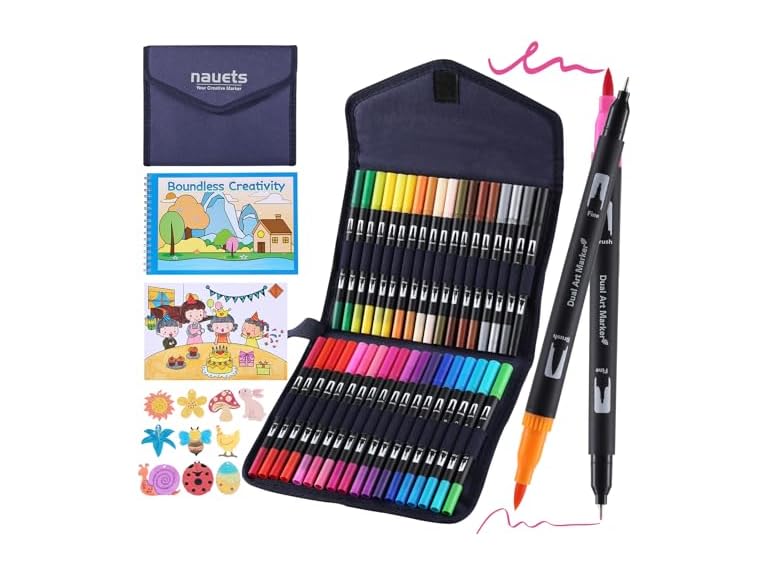 - 🎨 100% Safe Ink Art Markers: Nauets watercolor pens are made of non-toxic and acid-free water-based ink that meets international safety standards to provide greater peace of mind when in use. The paint markers use high-saturation eco-friendly pigments, with bright and lasting colors, smooth and even ink flow, making every stroke more outstanding.
