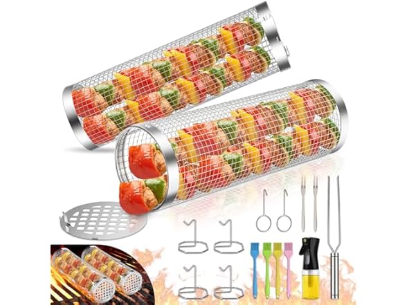 2 Pack BBQ Rolling Grill Baskets