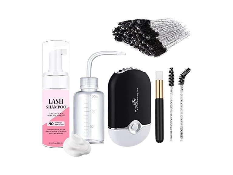 - 【Professional Eyelashes Cleanser Kits】AREMOD lash extension supplies sets included 50ml Lash Shampoo for lash extensions,1pcs handheld USB mini Lash Fan for lash dryer,50pcs disposable eyelashes brush,1pcs reusable nose brush,1pcs 150ml washing bottle. A professional cleaning kits for meeting your all needs on grafting eyelash and cleaning. Suitable for beauty salon and home use, perfect for personal daily care as a nourishing extension of eyelashes. (2 pack of what is shown and listed)
