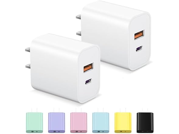 - [High-Speed Charging & Dual Port Design] Fast Charger Block with 20W of output power, USB-C and USB-A block frees you from messy chargers with various interfaces, ports to charge two devices simultaneously at high speed. Charging your iPhone 17 up to 50% in just 30 minutes, 75% faster than the ordinary 5W charger, saving over 1.5hrs for you.