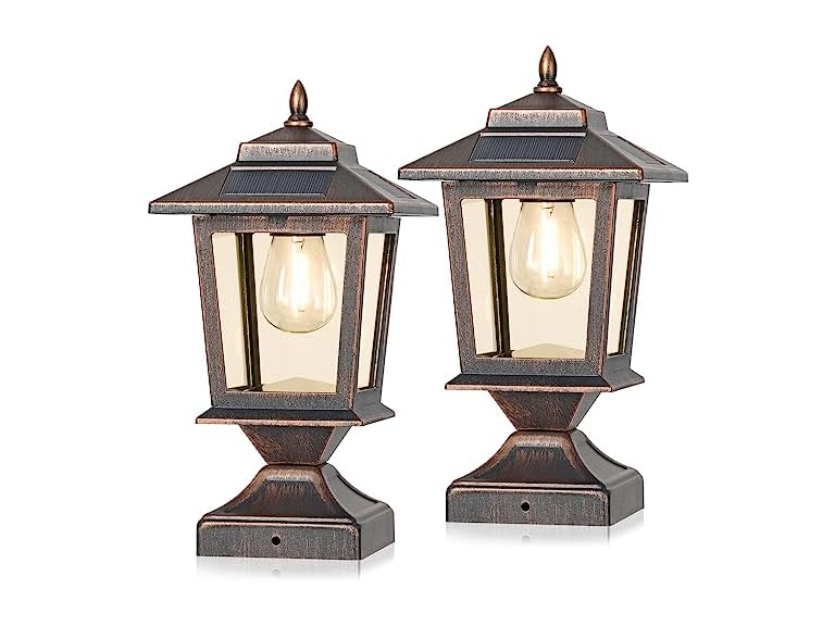 - What You Get:A welcome guide,two sleek design bronze solar post lights outdoor to light up our night ,save our yearly bills and decor our garden, and our good after sell service.We proudly stand behind all of our products 100%, our number one goal is customer satisfaction