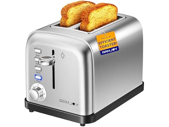 - STAINLESS STEEL 2 SLICE TOASTER - Designed with brushed stainless steel housing, the compact and efficient 2-slice toaster allows you to perfectly toast 2 slices of bread, both halves of bagels, and more.