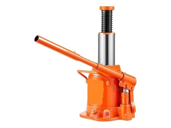 The 20-ton hydraulic bottle jack offers an impressive lifting range of 6.69–12.6 inches, making it ideal Compatible with handling heavy vehicles with ease.Built to last with a leak- hydraulic cylinder, this jack is compact and portable, Compatible with quick tire changes and repairs.Experience reliability and efficiency on the go.