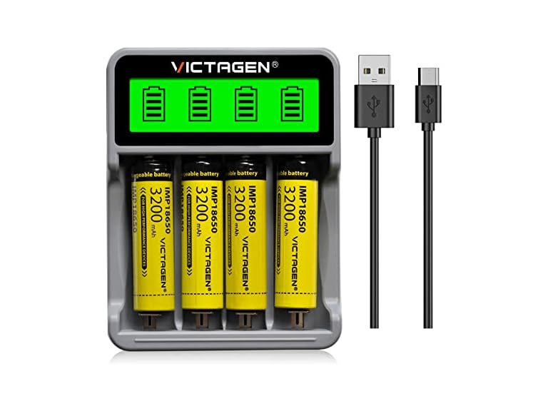 - šćUNIVERSAL MICRO-USB& TYPE-C DUAL INPUT ćWith Micro-USB & Type-C dual input, VICTAGEN 4 bay 18650 battery charger can work with any 5V 2A power bank, computer, car charger, USB Wall Charger, etc. Charge batteries any time and anywhere.