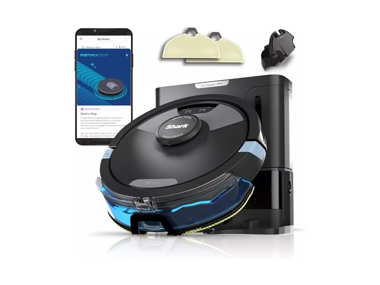 - Shark RV2610WA AI Ultra 2in1 Robot Vacuum & Mop with Sonic Mopping, Matrix Clean, Home Mapping, HEPA Bagless Self Empty Base, CleanEdge Technology, for Pet Hair, WiFi, Black/Silver