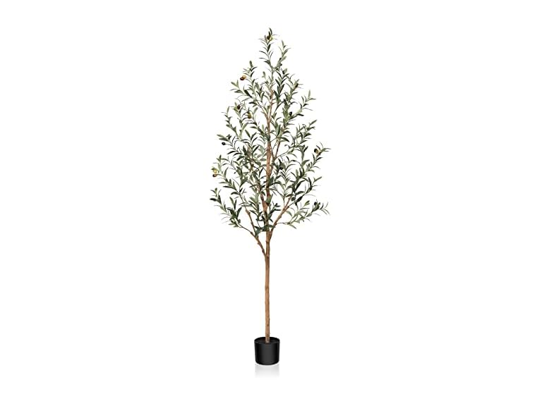 - (1) OAKRED Artificial Olive Tree, 6FT Tall Fake Silk Plant with Natural Wood Trunk