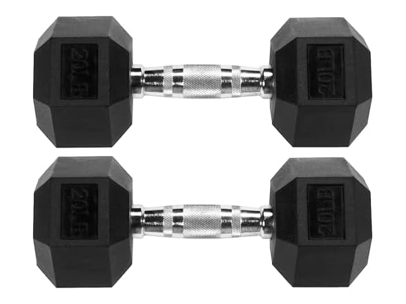 - (1) 20lbs Pair Hex Dumbbells Rubber Coated Hand Weights for Exercises and Fitness