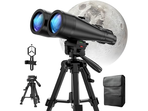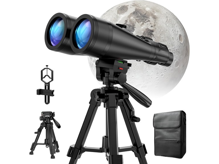 - WORKS WITH YOUR TRIPOD: Our astronomical binoculars weighs 4.66lb(2113g), and long-term hand-held will cause a burden on the arms and neck, so we equipped it with a 1/4 thread tripod, which can eliminate vibration and provide clear and stable observation.