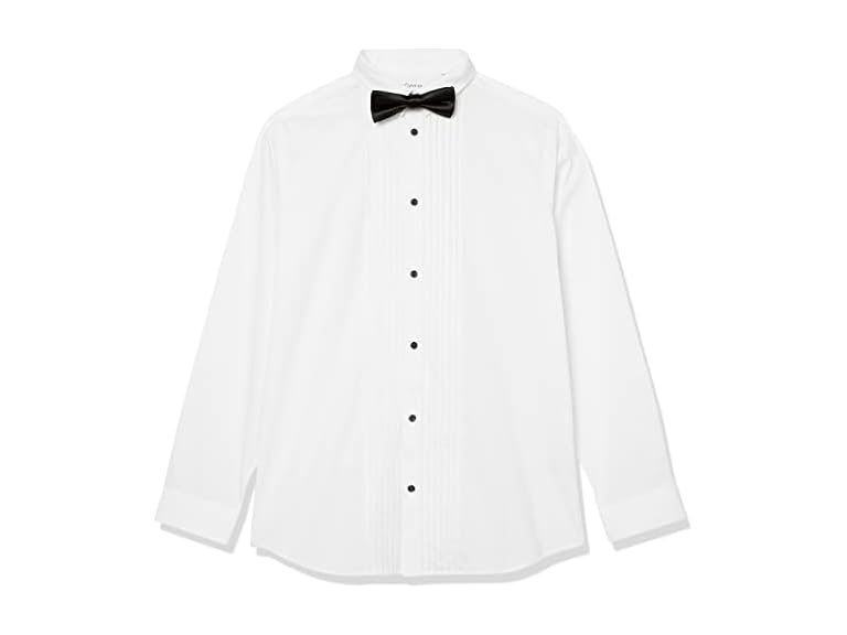- A DRESSWEAR STAPLE: Our Calvin Klein Long Sleeve Tuxedo Dress Shirt with Bow Tie is a 2-in-1 boys wardrobe staple. Featuring a classic button-down style with pleated bib detailing, and matching bow tie & hanky, this set is perfectly coordinated to accompany any dress pant.