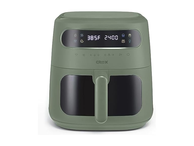 - (1) CRUX x Marshmello 8.0 QT Digital Air Fryer with TurboCrisp Technology, Touch Screen Temperature Control, Timer and Auto Shut-off, Fully Programmable, Silicone Liner Included, Olive