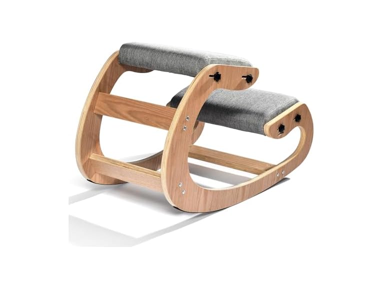 - (1) Kneeling Chair Ergonomic Posture Chair, Wood Adjustable Rocking Knee with Soft Padding, Natural Relief for Neck or Back Pain for Home Office, Max Load 300 lb