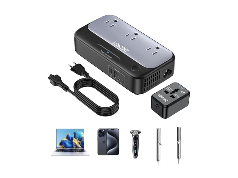 - Compact Size and Portable: LENCENT travel voltage converter with the compact size (5.9 x 3.1 x 1.3 in) and 4.9 ft detachable power cord, which can be easily put into a bag without taking up bulk, while being small enough not to take up extra space in a suitcase. It fits snugly into the wall outlet without falling off, protecting your devices to charge safely. A must-have item for your upcoming trip