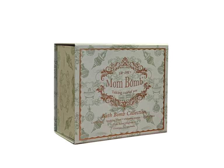 Celebrate the holidays with the ultimate gift of relaxation and luxury! The **Mom Bomb Evergreen Holiday Bath Bomb Gift Set** features four delightful bath bombs, each designed to capture the magic of the season. Packaged in an elegant green and gold box, this limited-edition set is the perfect holiday gift for anyone seeking relaxation and indulgence.