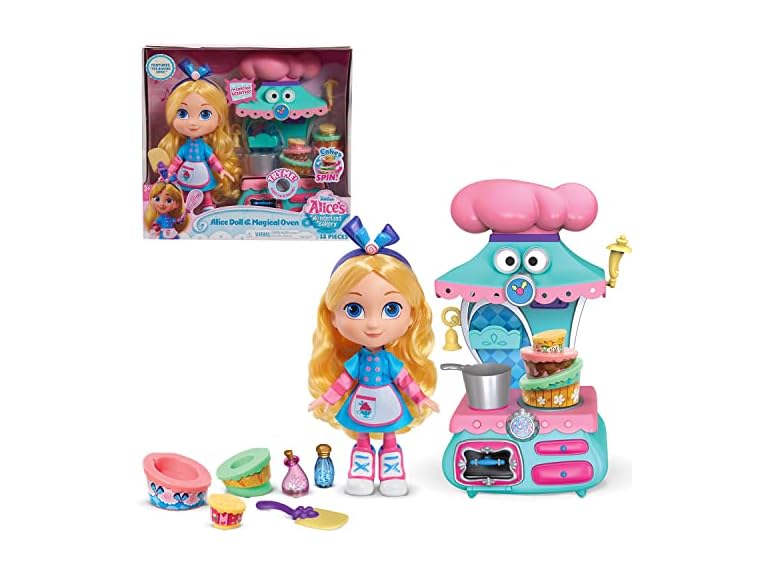 - (1) Disney Junior Alice’s Wonderland Bakery 10-inch Alice & Magical Oven Doll and Accesory Set, Kids Toys for Ages 3 Up by Just Play