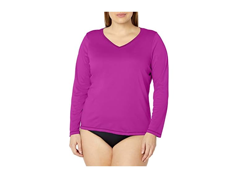 - (1) Kanu Surf Women's Plus Size Solid UPF 50+ Long Sleeve Swim Shirt Rashguard, Purple, 1X