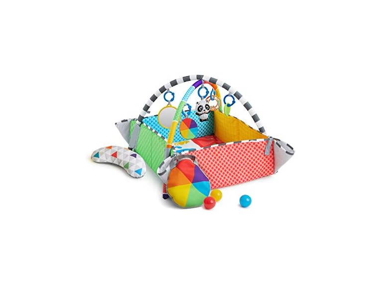 This is the space where early exposure to art and music happens. It’s plain to see Patch’s 5-in-1 Color Playspace™ Activity Gym & Ball Pit from Baby Einstein™ features bright colors. But why? Because even at 3 months old, babies struggle to see dull or pastel colors, but bright colors are completely captivating! To help baby discover the primary and secondary colors on the color wheel, you can say the name of each out loud. This play gym will grow with your little one from those earliest tummy-time workouts to baby’s favorite ways to help develop their motor skills: ball pit activities. The high-contrast panda toy plays more than 20 minutes of melodies, perfect background tunes for play sessions. Whether baby’s on the mat or on the go, they’ll love interacting with the 5 included take-along toys—from an infant-safe mirror to the visually-stimulating ring rattle. The collection of 10 colorful balls comes in handy because the activity mat transforms into a ball pit when all the walls are up. Even handier (for parents, at least) is the color wheel bag for easy storage of the balls. A removable prop pillow provides support for baby during tummy time. For quick cleanup, simply remove the toy bars, and toss the play mat into the washing machine. Makes a great gift for aspiring artists, newborn and up.