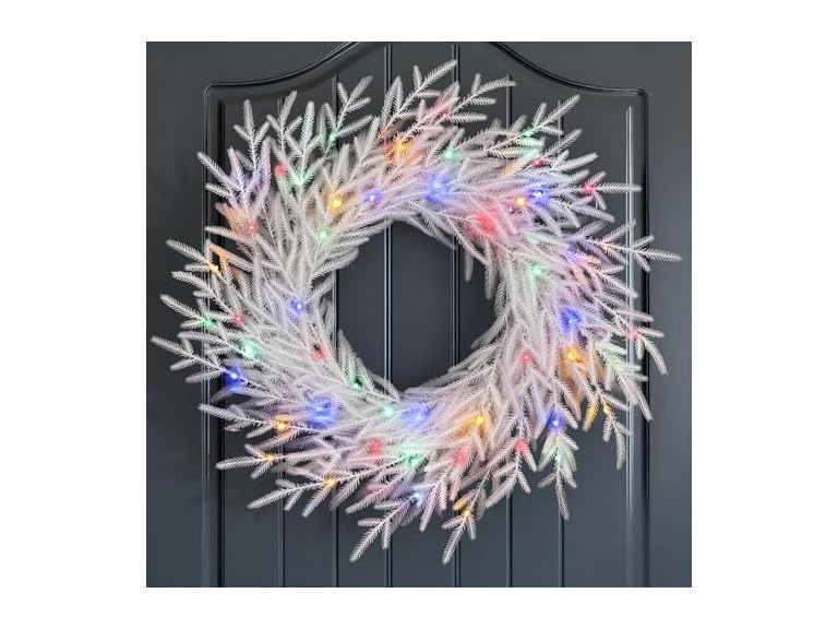 - Multi-Function Lighted Christmas Wreath: This elegant pre-lit wreath features 50 multi-color LEDs that effortlessly switch between warm white and vibrant RGB lighting. With 8 modes and an energy-saving timer (6 hours on/18 hours off), it creates a magical cord-free glow—powered by 3 AA batteries (not included). Perfect for adding festive charm anywhere without needing an outlet