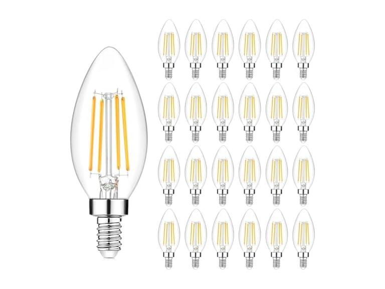- (1) 24-Pack Dimmable E12 LED Candelabra Bulbs 40Watt Equivalent, 2700K Warm White, 450Lumens, 4W B11 Vintage