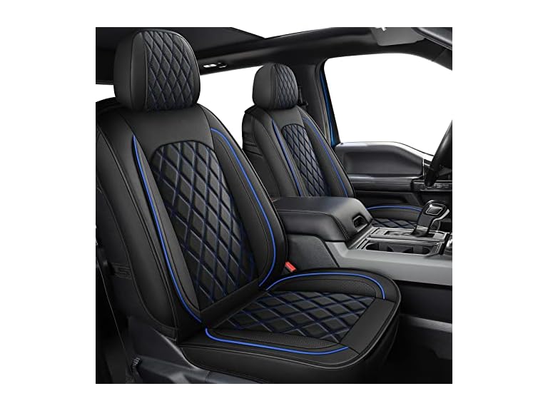 - [Universal Fit for Most Vehicles] Front seat covers blue are designed to fit most vehicles, including SUVs, Sedans, Pickup Trucks, Hatchbacks, Crossovers, Crew Cabs, Vans, and EVs. Automotive seat covers provide a perfect fit and instantly refresh your car's interior. Pro Tip: Check your car model on the product page to ensure compatibility before purchase.