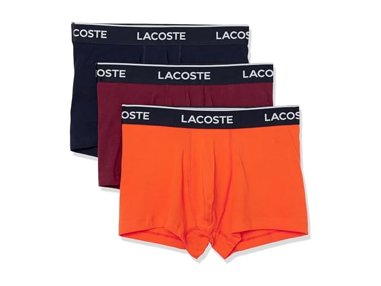 - (1) Lacoste Men's Cotton Stretch Essentials Trunks, 3-pack, Navy Blue/Orange/Maroon, XX-Large