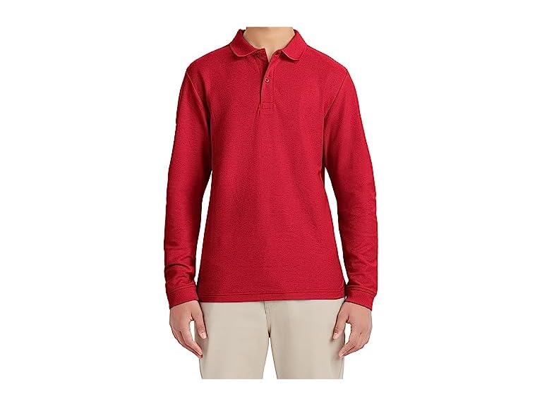- IZOD mens Long Sleeve Pique School Uniform Polo Shirt, Red, 34-35 US