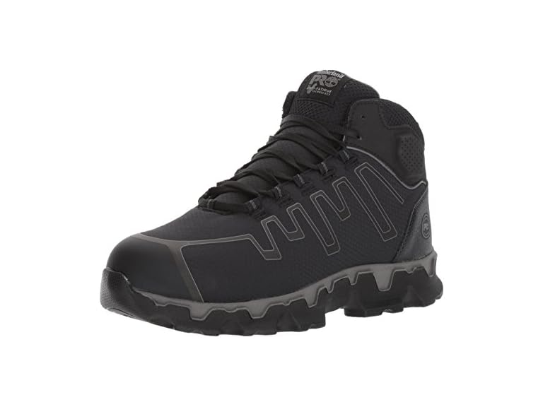 - (1) Timberland PRO Men's Powertrain Sport Mid Alloy Safety Toe Industrial Ahletic Work Shoe, Black/Grey, 9.5