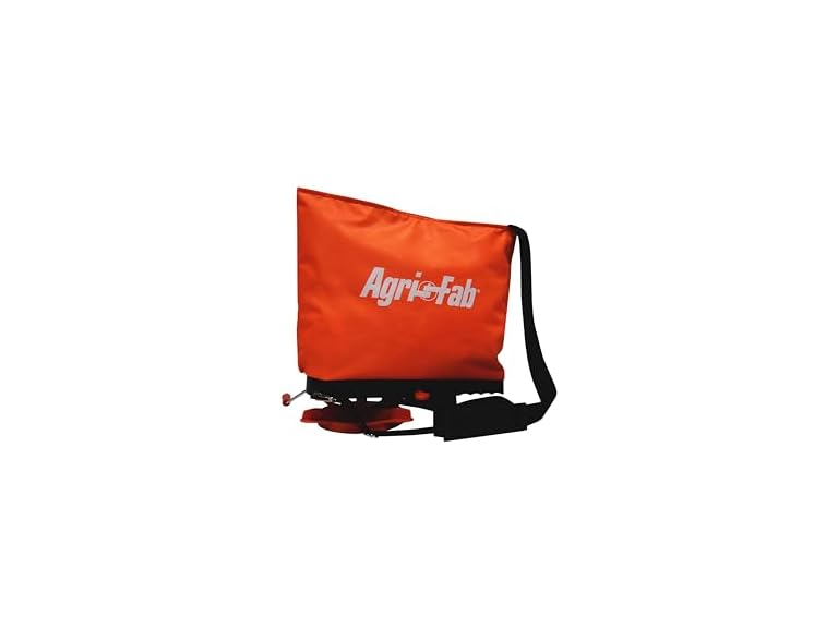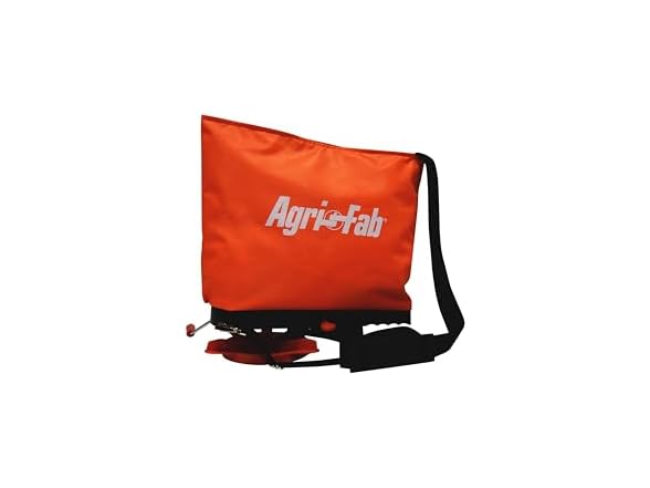 - Agri-Fab 45-0639 25 lb. Handheld Bag Seeder Spreader with Waterproof Bag, Enclosed Gears, Adjustable Shoulder Strap, Rear Baffle, Orange