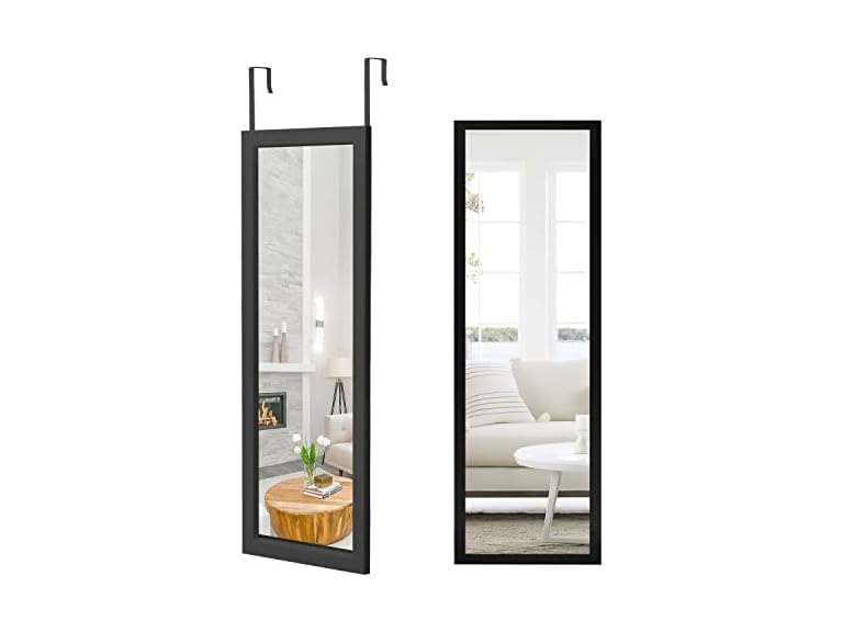 - WIDELY USED: This full-length over the door mirror is extremely functional, making it ideal for everyday use. It can lean against the wall or can be hung over the door with the metal hangers, or you can mount it on the wall vertically/horizontally for space-saving with the included screws kit.