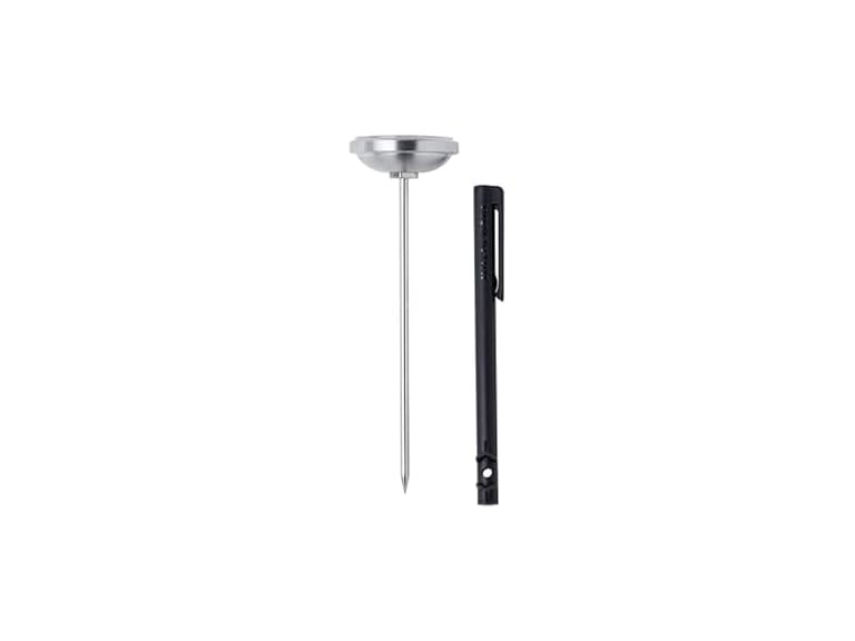 - (1) KitchenAid KQ919 Analog Instant Read Food and Meat Thermometer with 1.75-inch Dial, Recalibration Feature, Black Storage Sleeve