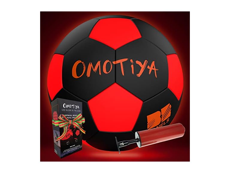 - (1) OMOTIYA LED Light Up Soccer Ball Games Toys - Glow in The Dark Soccer Balls Size 5 - Sports Gear Soccer Gifts for Boys & Girls 8-12+ Year Old - Kids, Teens Football Gift for 8 9 10 11 12 Year Old