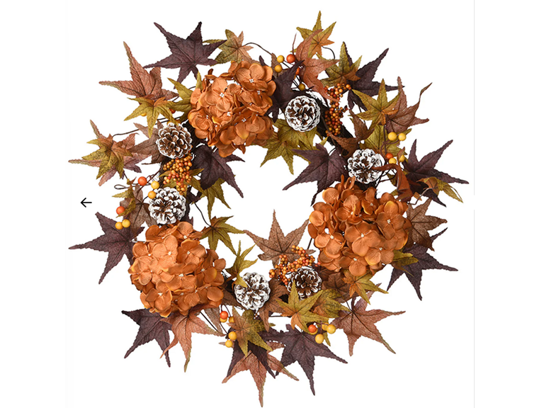 - Designed and decorated to look and feel lifelike, this 24 inch autumnal wreath decoration is the perfect complement to any fall-themed arrangement.