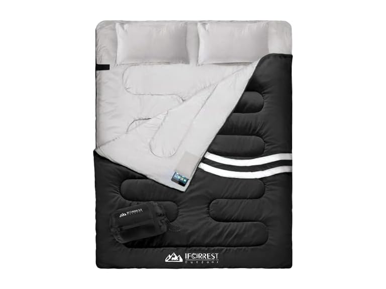 - (1) IFORREST Double Sleeping Bag for Adults - 2 Person Cold Weather(3-4 Seasons) Camping Bed, Extra-Wide & Warm - Queen Size XL (Oil Black)