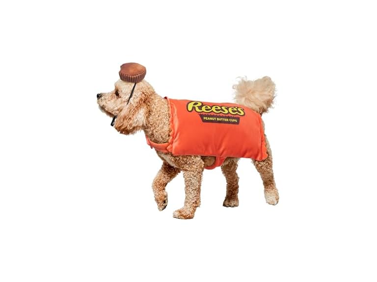 - OFFICIALLY LICENSED: Hershey's Reese's Peanut Butter Cup. THE RIGHT FIT: Pet size small/medium (6-20LBS), when deciding size, note costumes run smaller than apparel. Refer to the size chart and sizing video before choosing. Do not select size based on breed alone, as fit may vary.