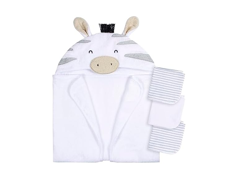- (1) Gerber Baby 4 Piece Animal Character Hooded Towel and Washcloth Set, Grey Zebra, One Size
