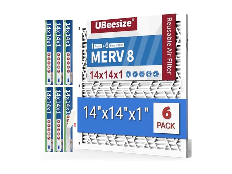 - UBeesize Air Filter 14x14x1 (6-Pack), MERV 8 MPR 700 AC/HVAC Furnace Filters,Deep Pleated Air Cleaner, (Actual Size 13.5 x 13.5 x 0.8 Inches),1x Reusable ABS Frame+6 x Filter,Easy Close/Open
