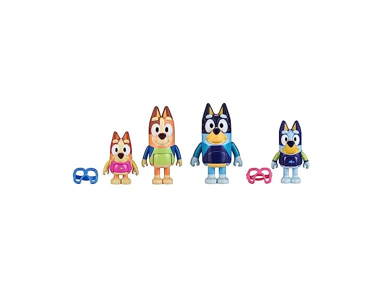 - The "Family Beach Day" 4 Pack includes Bluey, (little sister) Bingo, (Dad) Bandit and (Mum) Chilli figures.