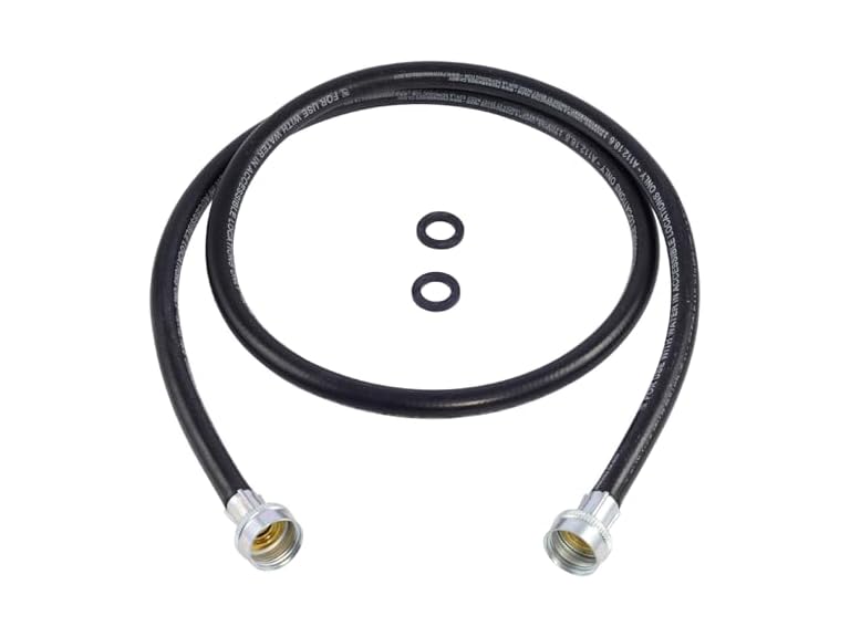 - DURABLE: This corrosion-resistant washing machine hose is constructed of black rubber designed to withstand high pressure. Designed to prevent kinking and crimping