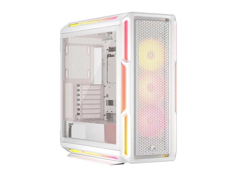 (1) CORSAIR iCUE Link 5000T LX RGB Mid-Tower ATX PC Case – 3X Pre-Installed LX120 RGB Fans, Integrated Aurora RGB Light Strips, Spacious Interior, iCUE Link System Hub Included – White