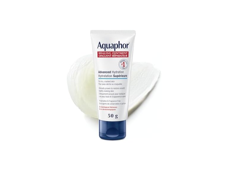 (1) Aquaphor Multipurpose Healing Ointment for Extremely Dry, Cracked Skin (50g), Moisturizing Ointment and Hand Cream for Use After Hand Sanitizer or Hand Soap