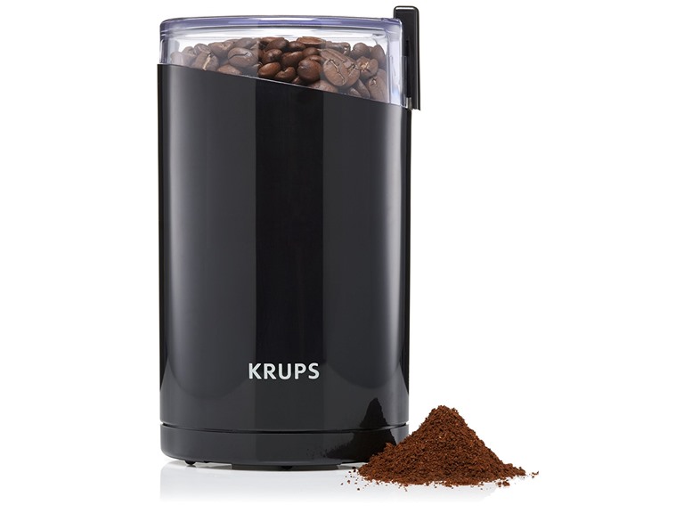 - (1) Krups One-Touch Coffee and Spice Grinder 3 Ounce Bean Hopper Easy to Use, One Touch Operation 200 Watts Coffee, Spices, Dry Herbs, Nuts, 12 Cup Black