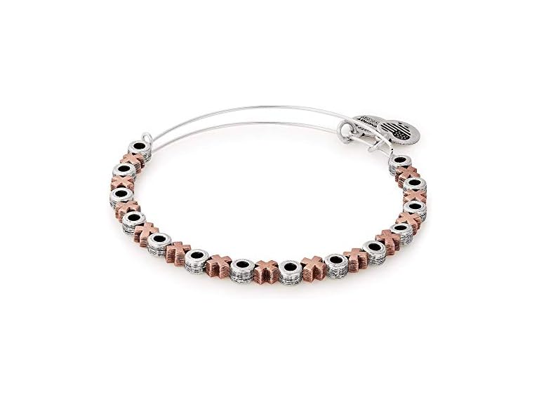 - (1) Alex and Ani Accents XO Hugs and Kisses Beaded Expandable Bangle for Women, Two-Tone Rafaelian Finish, 2 to 3.5 in