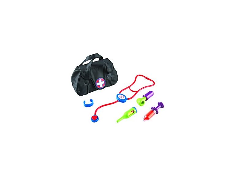 - Set includes vinyl doctor's bag, stethoscope, syringe, bandage, ear scope, and thermometer. Bag measures 6¾"W x 5"H