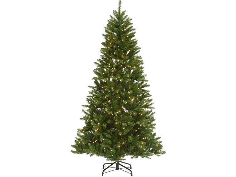 Transform your home into a winter wonderland with National Tree Company's Pre-Lit Artificial Christmas Tree. This majestic Peyton Spruce tree is 7.5 feet tall and 54 inches in diameter at the bottom, giving the tree a wide profile. Friends and family alike will marvel at how the tree closely mimics those outside. Made to look and feel lifelike, the stunning realism of the tree is defined by its close attention to detail, featuring hundreds of individually crafted branch tips that make up the wide, full-bodied branches that create space for your lights and ornaments. The tree is designed with a hinged branch system that allows the branches to swing down for a quick and simple set-up and fold back in for easy storage. Set aside 45-60 minutes after assembly to properly shape the tree by peeling back the branches and pulling the tips apart to give the branches a more full-bodied look. This fantastically festive tree is strung with 550 white UL lights prior to packaging and includes a sturdy, metal base for a more convenient setup. The lights operate individually, so if the bulb lens has not been cracked or broken, the light set will continue to illuminate except for any individual bulbs that are not working. Before dressing the tree in twinkling lights and glistening ornaments, consider placing it in a living room or dining area where it can be viewed from multiple angles and does not block any entryways. Constructed with sturdy, high quality materials and hypo-allergenic, fire-resistant needles, this tree is built to bring holiday cheer for years to come. At National Tree Company, we strive to create high quality Christmas decorations to help you transform your home so you can keep making every holiday moment magical.