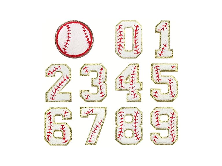 - (1) Zecamin Number Iron on Patches, 11 PCS Sew on Chenille Patches, Embroidered Gold Baseball Style Patch, Decorative 0-9 Numbers Badge Decorate Repair Patches or Clothing Hat Shirt Bag Jeans