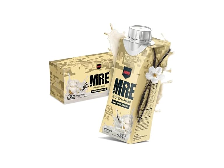 - (1) REDCON1 MRE Ready to Drink Protein Shakes, Vanilla Milkshake - Protein Drinks with Whole Food Sources - Sugar Free RTD Shake Formulated to Fuel Athletes at Any Time (12 Pack)