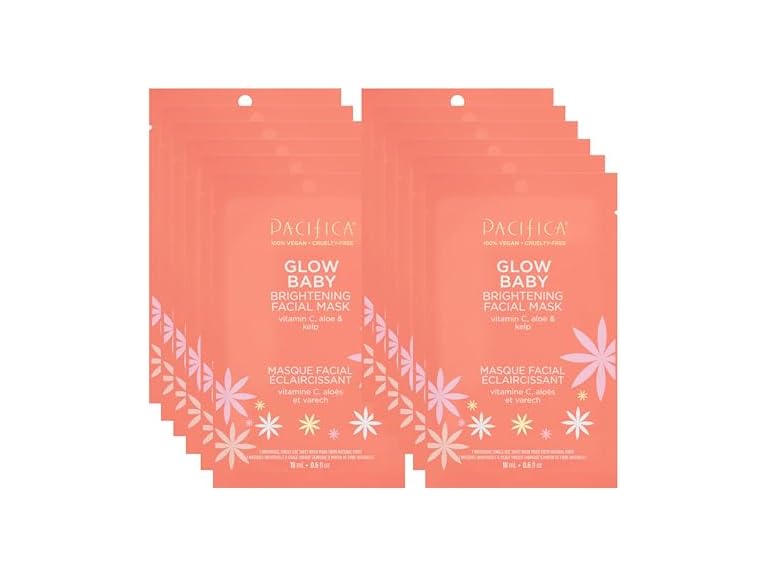 - (1) Pacifica Sheet Face Mask - 12 Pack - Glow Baby Brightening Facial Mask w/Vitamin C, Aloe & Kelp – Cooling Mask for Dark Spots & Fine Lines - Clean Beauty Vegan & Cruelty-Free Dermatologist Tested